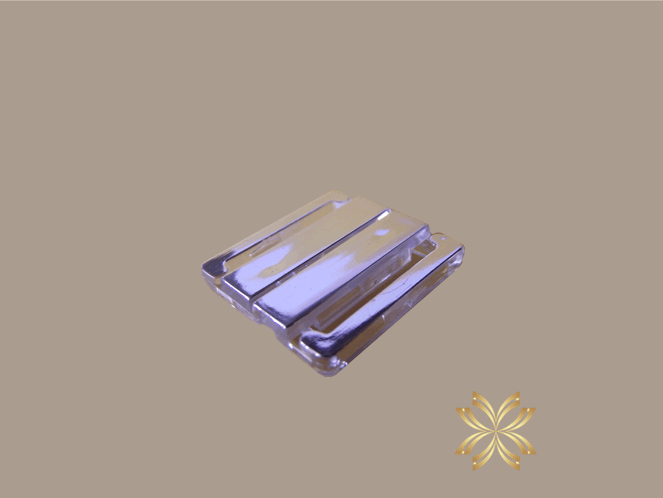 Fecho frontal acrilico super transparente com acabamento hotstamping prata ou dourado
